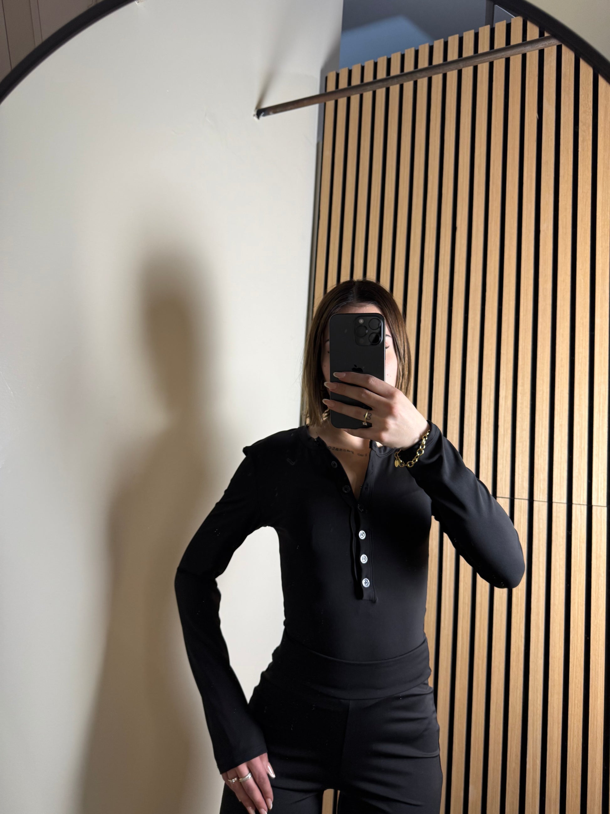 maglia con maniche a guanto e bottoncini